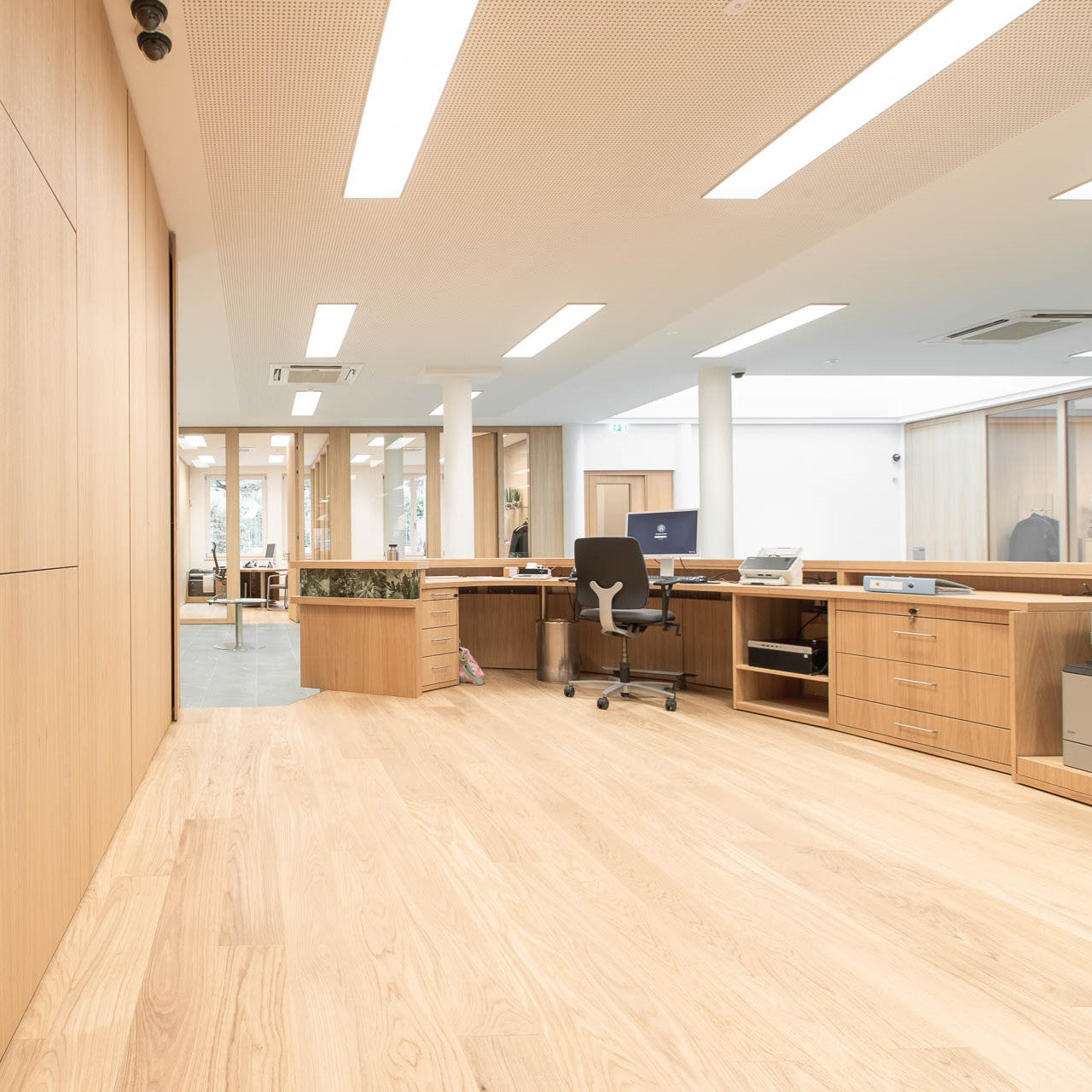 Mit natürlichen Ölen ist dieser Boden in in Rohholzoptik wohnfertig geölt - pearl.